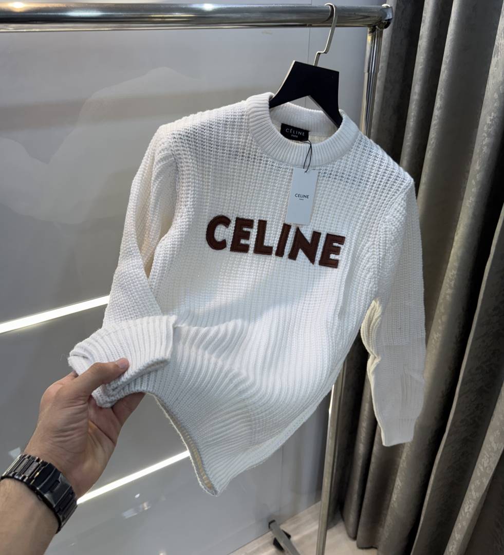 Celine White Embroidery Logo Imported Knitted Premium Pull Over