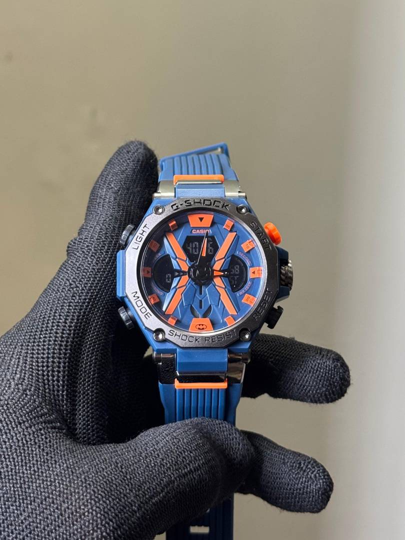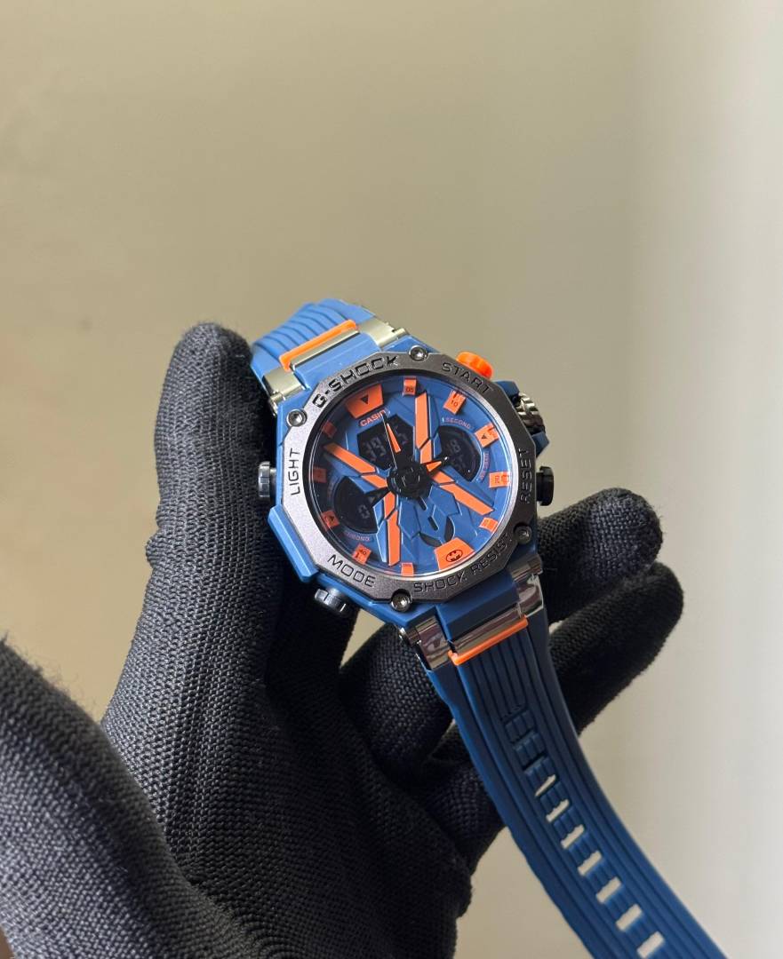 Gshock Blue-Orange Silicone Strap Analog With Digital Premium Watch