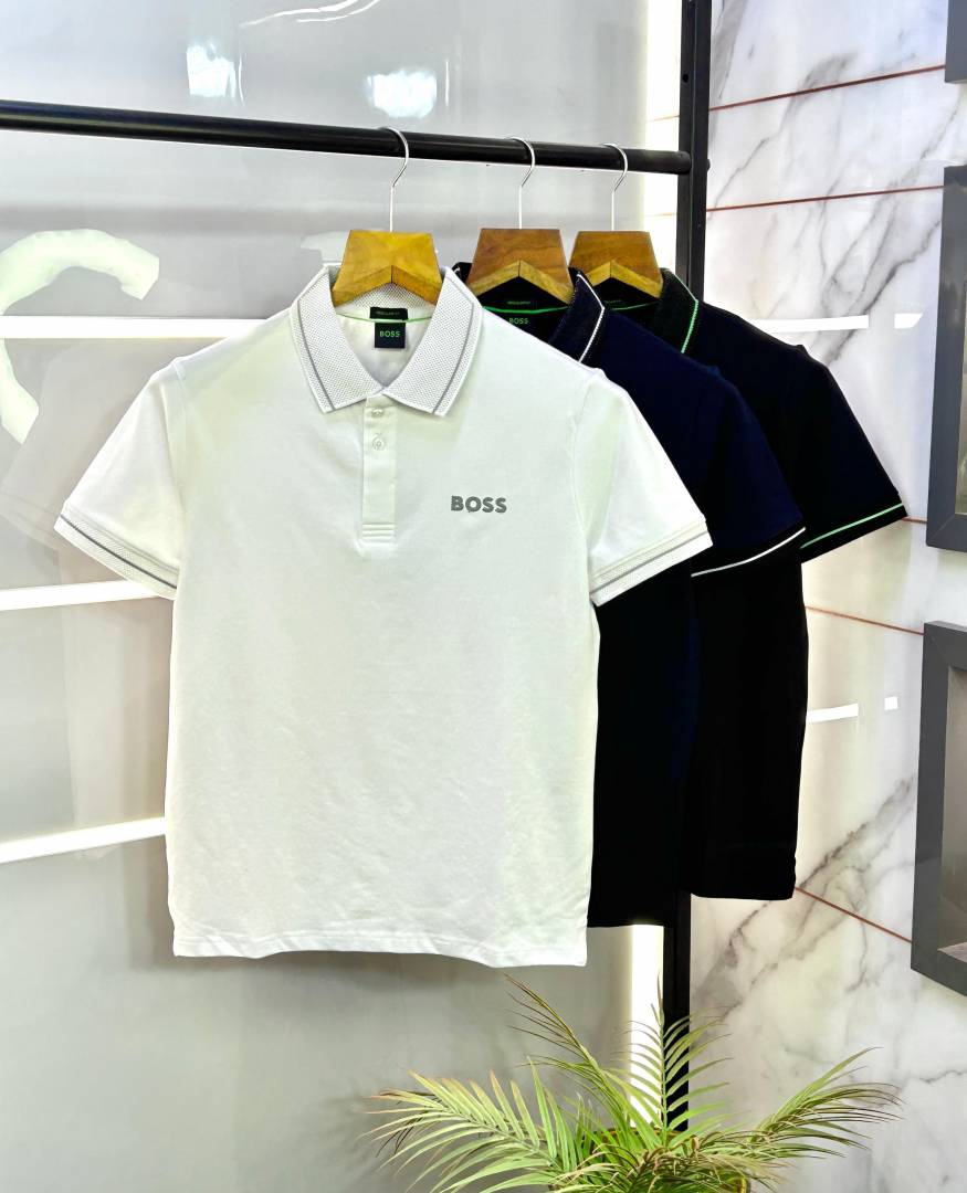 Hugo_Boss Black Embossed Logo Print Premium Collar Neck Polo T-shirt F1691-BL